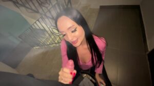 Cheating on boyfriend, sucking dick and fucking for money in the entrance, almost caught, risky publ